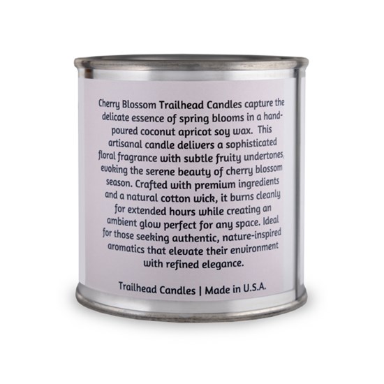 Cherry Blossom Trailhead Candles capture the delicate essence of spring blooms in a hand-poured coconut apricot soy wax. This artisanal candle delivers a sophisticated floral fragrance with subtle fruity undertones, evoking the serene beauty of cherry blossom season. Crafted with premium ingredients and a natural cotton wick, it burns cleanly for extended hours while creating an ambient glow perfect for any space. Ideal for those seeking authentic, nature-inspired aromatics that elevate their environment with refined elegance.
